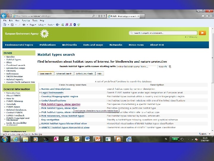 Data from Biogeographical process • Integrate in EUNIS search modules for species and habitats: ü Reference list ü (Conclusions data base) ü (Reservations)