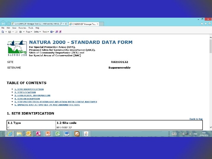 Emerald • • • Sites ü Candidate sites (only on Co. E webpage) ü Adopted Sites (full database and GIS) Designation types at National level (ENP) Data from Biogeographical process (conclusions data base, Reservations, Reference list, …. ) Data delivery on CDR and QA/QC reporting Data entry software (cfr. N 2000 software)