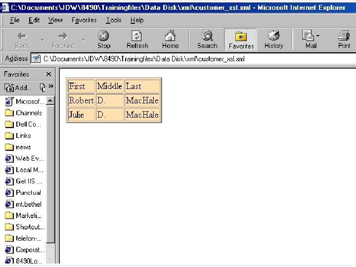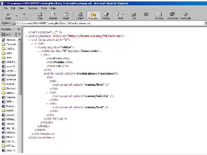 XSL • • • e. Xtensible Stylesheet Language Template for displaying XML data Client-side (browser dependent) Server-side (browser independent) See customer. xsl, customer_xsl. xml, customer_transform. xml