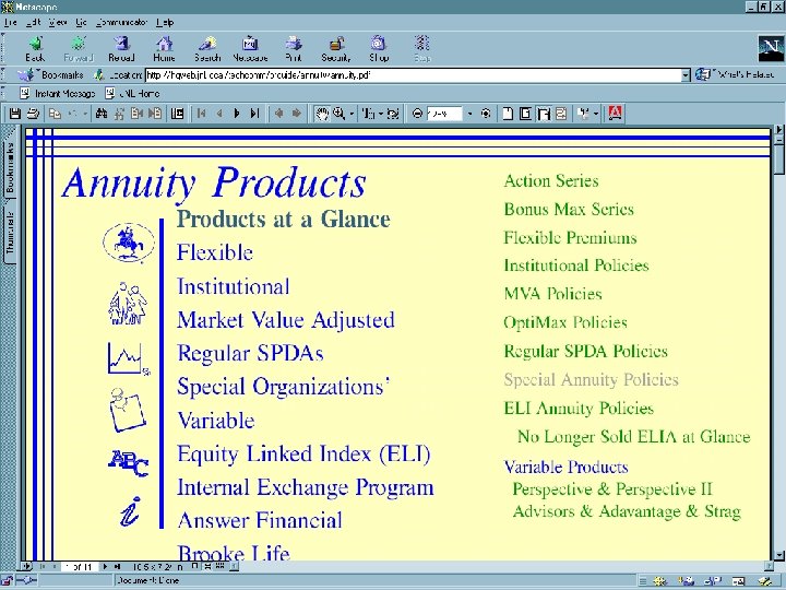 IT Highly Productive: Products ELITE 90 Equity-Linked CD Equity-Linked Fund on VAs Equity-Linked Indexed Annuities Last Survivor Universal Life New York NIKE Defined Strategies VA Perspective Advantage VA Perspective Advisors VA Perspective Variable Annuity Repackaged Term Insurance Repriced Term Insurance Target Select Universal Life Update UL Product Line