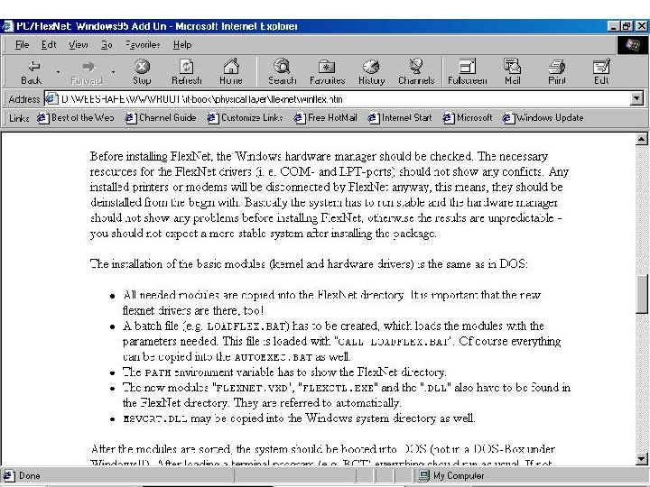 Sound Card Packet Radio z. Spec: y 1200 -9600 bps y. PC + Sound Card + Radio z. URL: yhttp: //home. pages. de/~flexnet/ z. Search Internet: (Keyword) yflexnet