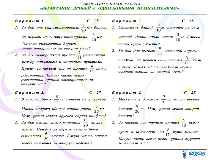 Содержание: 1. Обыкновенные дроби. 2. Десятичные дроби. 3. Действия с дробями. 4. Решение задач.