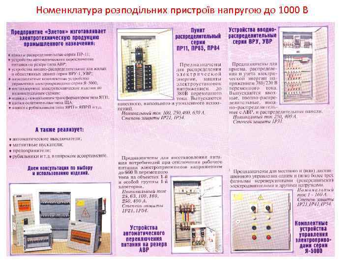 Номенклатура розподільних пристроїв напругою до 1000 В