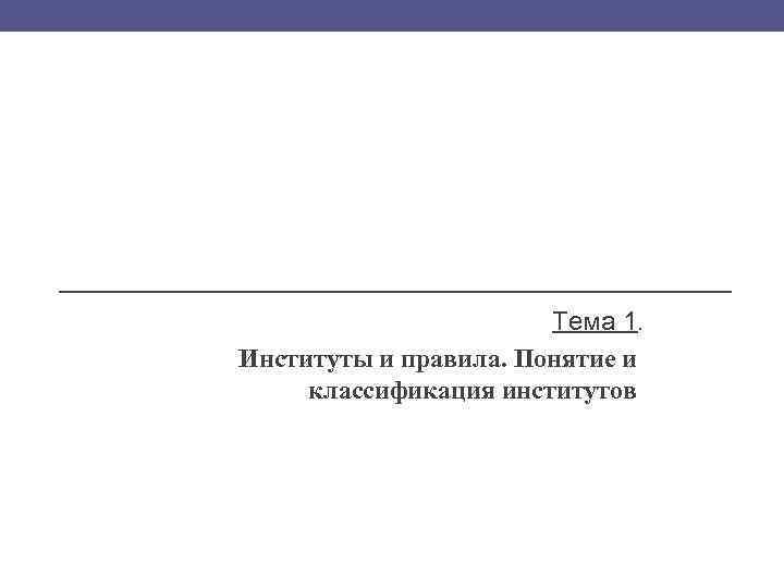Тема 1. Институты и правила. Понятие и классификация институтов