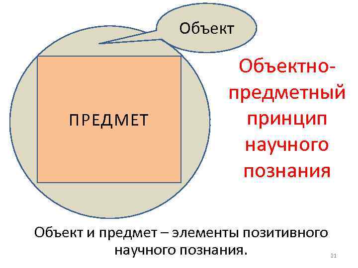 Объект ПРЕДМЕТ Объектнопредметный принцип научного познания Объект и предмет – элементы позитивного научного познания. 21