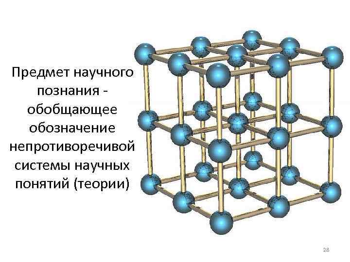 Предмет научного познания - обобщающее обозначение непротиворечивой системы научных понятий (теории) 28