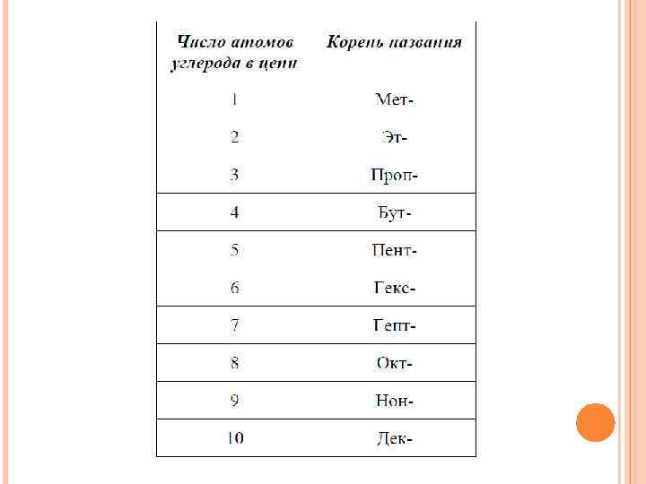 Функциональная группа Префикс Суффикс Класс соединения –СООН карбокси- -овая кислота Карбоновые кислоты –SO 3 H сульфо- -сульфокислота Сульфокислоты >С=О оксо- -аль, -он-цифра Альдегиды, кетоны –OH гидрокси- -ол-цифра Спирты –SH меркапто- -тиол Тиолы –NH 2 амино- -амин Амины –NO 2 нитро- – Нитросоединения –O– окса- - Простые эфиры –Hal галоген- - Галогенпроизводные