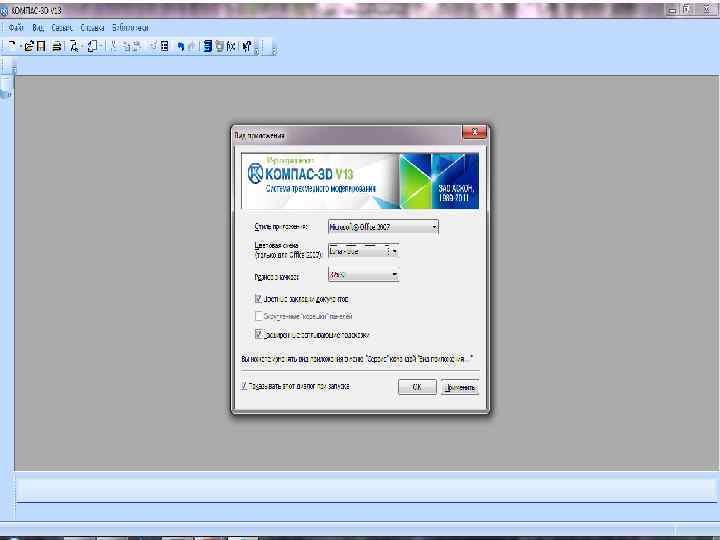 КОМПАС-3 D V 13 предназначен для использования на персональных компьютерах типа IBM PC, работающих под управлением русскоязычной (локализованной) либо корректно русифицированной 32 - или 64 -разрядной версии операционных систем MS Windows 2000/XP/Vista/7. Минимально допустимые уровни ОС: – Windows XP SP 3, – Windows Vista SP 2. – Windows 7. Объем свободного пространства на жестком диске для установки базового комплекта -1, 2 Гб, Машиностроительная конфигурация - + 600 Мб, Приборостроительная + 500 Мб, Строительная + 2 Гб