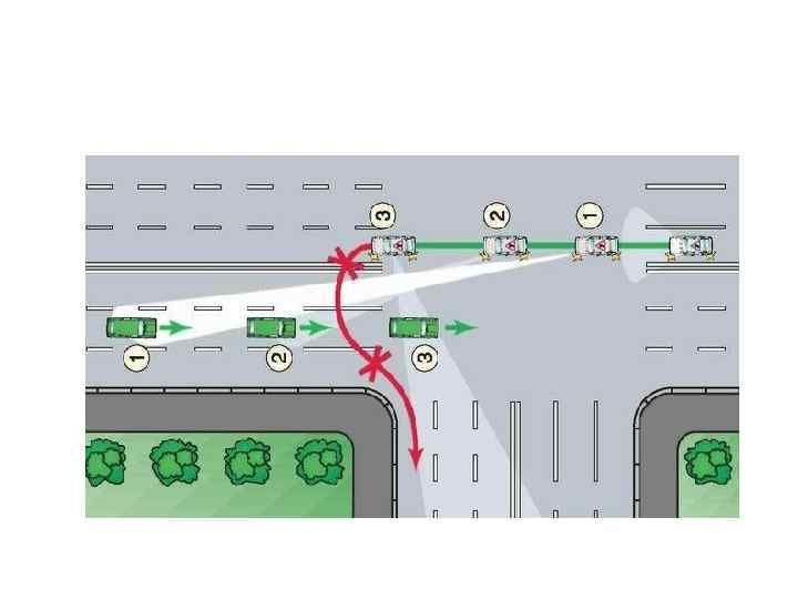 Если на перекрестке вы поедите прямо При наличии двух и более полос в вашем направлении не занимайте крайнее левое положение. Возможно, сзади едет автомобиль, водитель которого очень спешит и планирует повернуть налево быстрее машин, которые поедут прямо.