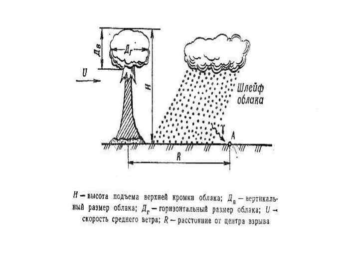 Время начала выпадения этих частиц (tн). отсчитываемое от момента взрыва, называется временем выпадения или временем начала формирования следа облака и может быть вычислено по формуле где X - расстояние от центра взрыва, км V- скорость среднего ветра, км/ч