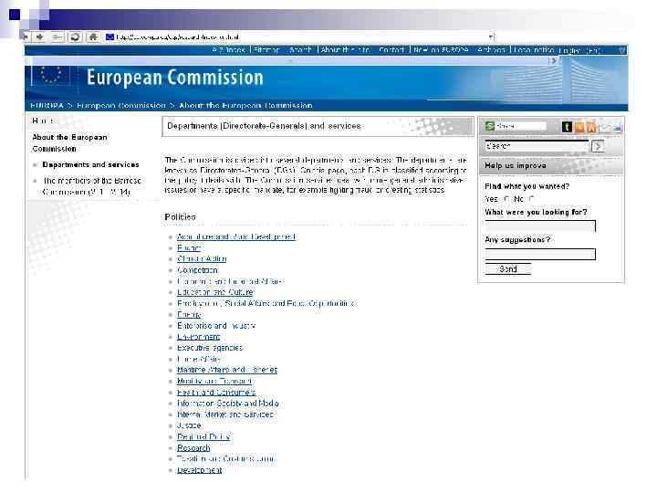 Література 1. 2. 3. 4. 5. 6. 7. Directorate General for Enterprise and Industry http: //ec. europa. eu/enterprise/index_en. htm Directorate General for Internal Market and Services - http: //ec. europa. eu/dgs/internal_market/index_en. htm Directorate General for Competition – http: //ec. europa. eu/dgs/competition/index_en. htm Research Directorate-General http: //ec. europa. eu/dgs/research/index_en. html Directorate General for Energy http: //ec. europa. eu/dgs/energy/index_en. htm Directorate General for Mobility and Transport http: //ec. europa. eu/dgs/transport/index_en. htm Directorate-General for Agriculture and Rural Development http: //ec. europa. eu/dgs/agriculture/index_en. htm