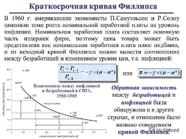 10. 3 Взаимосвязь инфляции и безработицы: кривая Филлипса