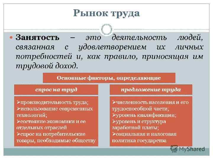 Тема 10 Макроэкономический анализ рынка труда План лекции: 1. Спрос и предложение труда 2. Безработица: причины, виды и последствия 3. Взаимосвязь инфляции и безработицы: кривая Филлипса