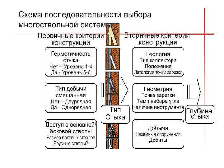 Уровень 1 -основной ствол и боковые ответвления не имеют крепления обсадными трубами (боковой ствол может иметь фильтрхвостовик). Уровень 2 -основной ствол обсажен зацементированной колонной, а боковой ствол имеет открытый забой или оснащен хвостовиком (фильтром). Преимущества Низкие затраты Стабильны в твердых породах Улучшает дренирование пласта Сцементированные пласты Радиус от малого до среднего Недостатки Нестабильны в рыхлых породах Нет 100% уверенности захода в боковые стволы (1 уровень) Ограниченные возможности ремонта Перетоки и обводнение Преимущества 2 уровня Низкие затраты на заканчивание Репер глубины Более двух стволов Контролируемый доступ в боковые стволы