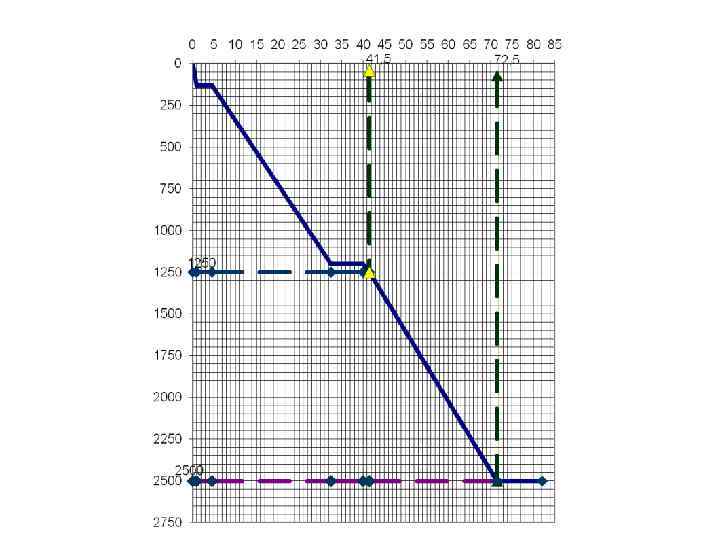Например, требуется определить проходку за январь месяц, если известно, что забой скважины к его началу составляет 1250 м. С оси ординат величину забоя переносят на линию графика проходки (см. рис). Затем полученную точку пересечения переносят на ось абсцисс. От точки пересечения с ней откладывают продолжительность периода (31 день). С оси абсцисс восстанавливают перпендикуляр, и точку пересечения его с линией графика сносят на ось ординат. Таким образом, определяют забой скважины на конец анализируемого периода. Величину проходки определяют разницей между забоями, т. е. 2500 – 1250 = 1250 м.