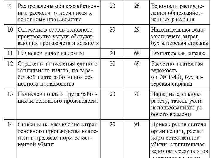 Для учета затрат на производство (выполнение работ, оказание услуг) предназначены следующие счета: • 20 «Основное производство» ; • 21 «Полуфабрикаты собственного производства» ; • 23 «Вспомогательные производства» ; • 25 «Общепроизводственные расходы» ; • 26 «Общехозяйственные расходы» ; • 28 «Брак в производстве» ; • 29 «Обслуживающие производства и хозяйства» ; • 96 «Резервы предстоящих расходов» ; • 97 «Расходы будущих периодов» .