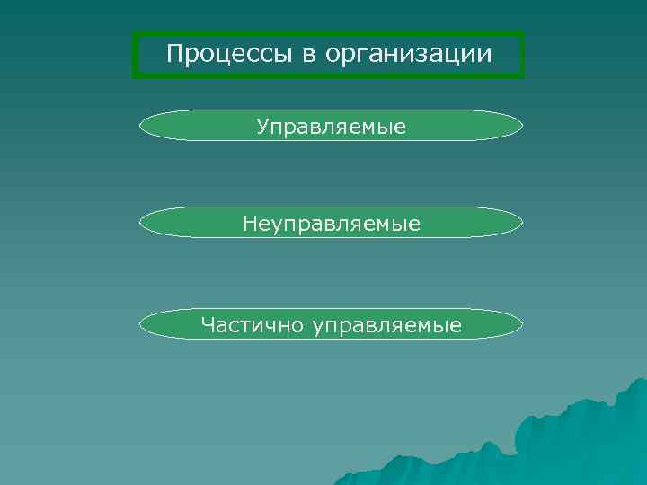 Процессы в организации Управляемые Неуправляемые Частично управляемые