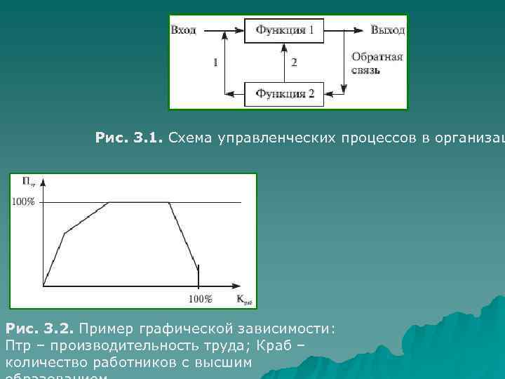 Рис. 3. 1. Схема управленческих процессов в организац Рис. 3. 2. Пример графической зависимости: Птр – производительность труда; Краб – количество работников с высшим