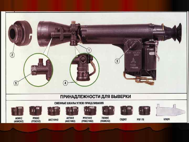 3 вопрос. Порядок выверки прицела НСПУ l l l l Для проведения к нормальному бою оружия с ночным прицелом днем или в сумерки необходимо: проверить соответствие маркировки шкалы углов прицеливания, установленной на прицеле, оружию: на АКМН шкала с маркой АКМ на АК 74 Н маркировку АК 74 присоединить прицел к оружию; установить оружие на прицельном станке; установить на прицельной планке оружия дальность 3 у оружия АКМН и РПКН; дальность 4 у оружия АК 74 Н. РПК 74 Н. ПКМН. СВД навести оружие по открытому прицелу в точку прицеливания на расстоянии 100 м (мишень для приведения оружия к нормальному бою); установить на ночном прицеле шкалу на деление 3 (АКНН, РПКН), деление 4 (АК 74 Н, РПК 74 Н, ПКМН, СВД) убедиться, что диафрагма прицела закрыта; включить прицел и, вращая маховик яркости сетки и корпус диафрагмы, подобрать оптимальную яркость сетки и наилучшую видимость мишени; проверить совпадение вершины прицельного угольника сетки с той же точкой прицеливания, что и по открытому прицелу;