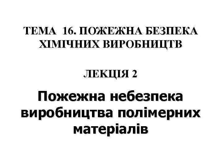ТЕМА 16. ПОЖЕЖНА БЕЗПЕКА ХІМІЧНИХ ВИРОБНИЦТВ ЛЕKЦІЯ 2 Пожежна небезпека виробництва полімерних матеріалів