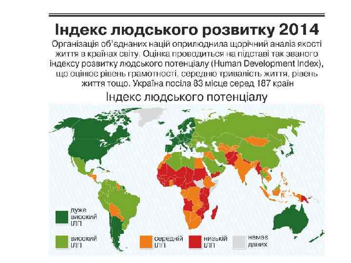 Градація країн за показником ІЛР: 0, 8 і вище – країни з високим рівнем людського роз витку; 0, 500 0, 799 – країни із середнім рівнем людського розвитку; менше ніж 0, 5 – країни з низьким рівнем людського роз витку.