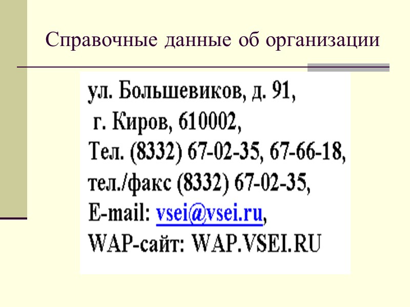 Справочные данные об организации