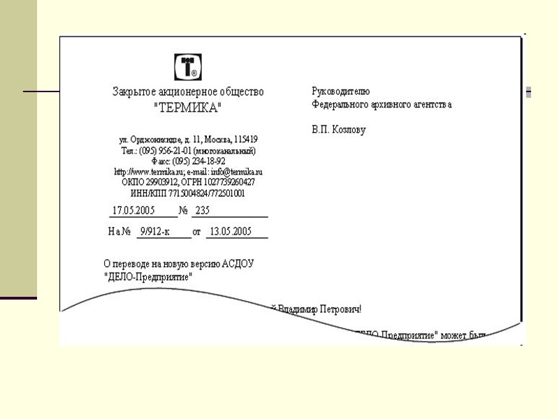 Адресование юридическому лицу