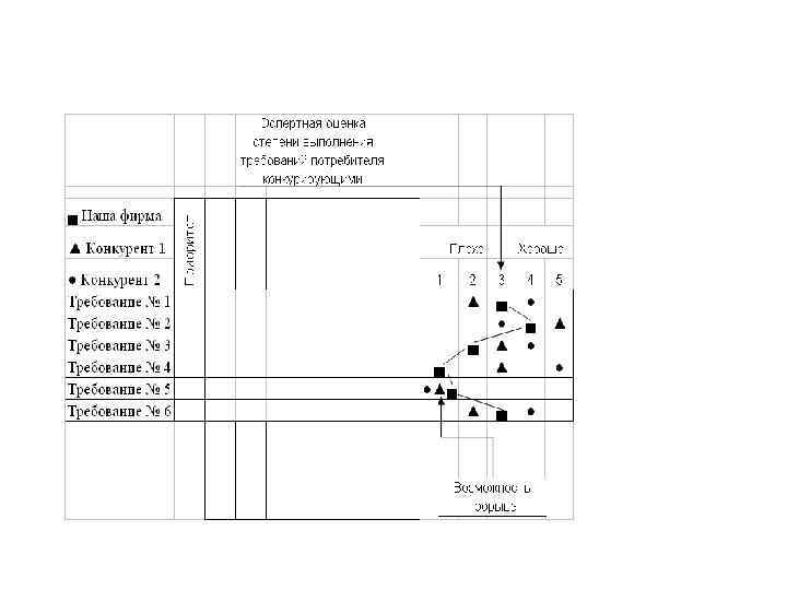 Анализ таблицы приоритетов обладает самостоятельной ценностью. Так, например, некоторые неосознанные требования могут получить неожиданно высокие оценки у потребителей, и уже один только этот факт оправдывает средства, вложенные в обсуждаемое маркетинговое исследование.