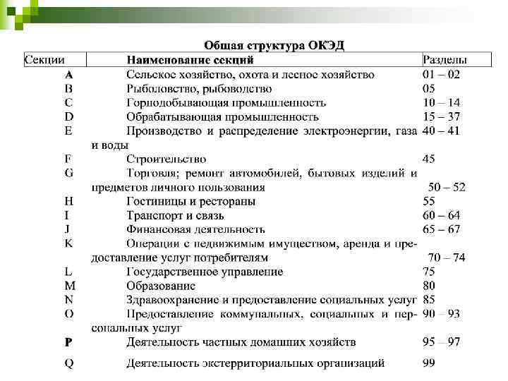 2. Классификаторы, применяемые в национальной экономике Общесоюзный классификатор отраслей народного хозяйства (ОКОНХ) n Общегосударственный классификатор видов экономической деятельности (ОКЭД) n Необходимость в разработке ОКЭД вызвана несоответствием новым экономическим условиям действующего до настоящего времени ОКОНХ, созданного применительно к директивной экономике, а также невозможностью использования ОКОНХ для международных сопоставлений статистической информации. В ОКЭД не учитываются такие классификационные признаки, как форма собственности, организационно-правовая форма и ведомственная подчиненность субъектов хозяйствования. В ОКЭД не проводится разделение видов деятельности на производственные и непроизводственные, а также не выделяются лицензируемые виды деятельности.