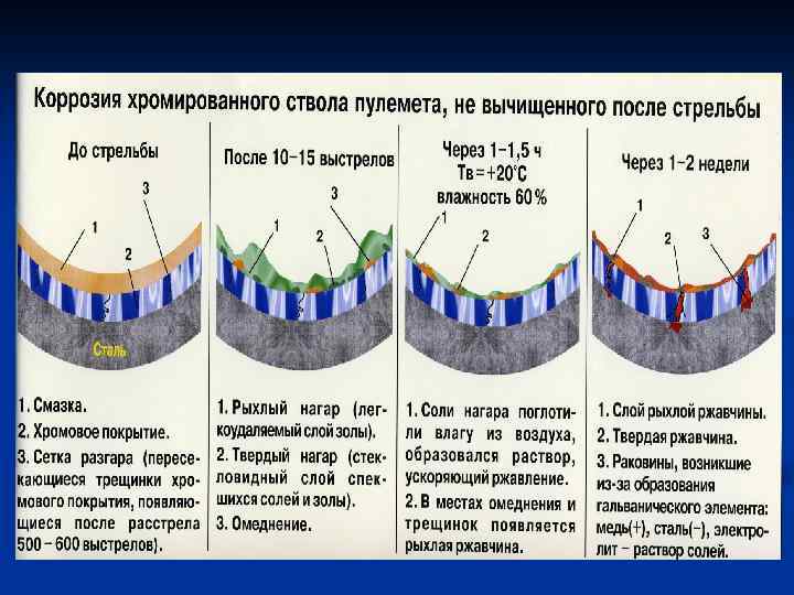 В результате причин химического характера в канале ствола образуется нагар, который оказывает большое влияние на износ канала ствола.