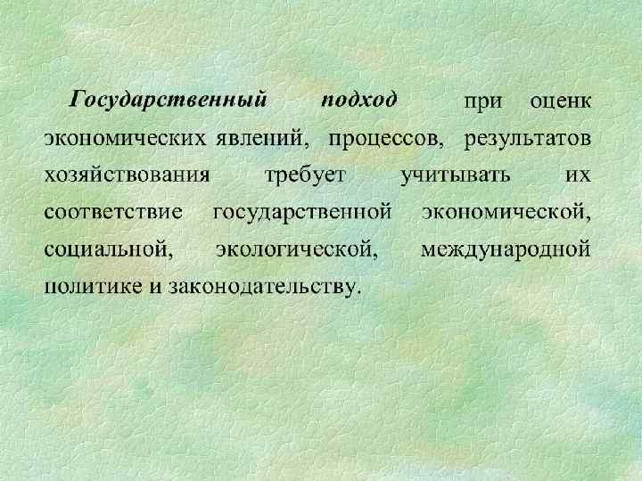 Экономико-экологический анализ § Используется для исследования взаимодействия экологических и экономических процессов, связанных с сохранением и улучшением окружающей среды и затратами на экологию. § Его цель – обоснование тактической и стратегической политики по вопросам охраны окружающей среды, создания экологически чистой продукции, безопасного производства и повышения эффективности природоохранных мероприятий.