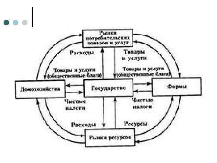 Домохозяйства и фирмы при посредничестве государства тесно взаимодействуют на рынке товаров и услуг, рынке факторов производства и финансовом рынке. ¢ Это взаимодействие можно представить в виде экономического кругооборота. ¢