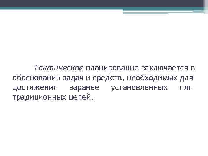 Тактическое планирование заключается в обосновании задач и средств, необходимых для достижения заранее установленных или традиционных целей.