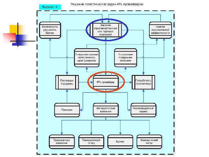 n n ЗPL провайдер – “Third party logistics” - передача части или всех логистических функций «третьей стороне» 4 PL провайдер – «Forth party logistics” – 3 PL провайдер плюс консалтинговые услуги оптимизации.