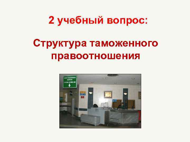 2 учебный вопрос: Структура таможенного правоотношения