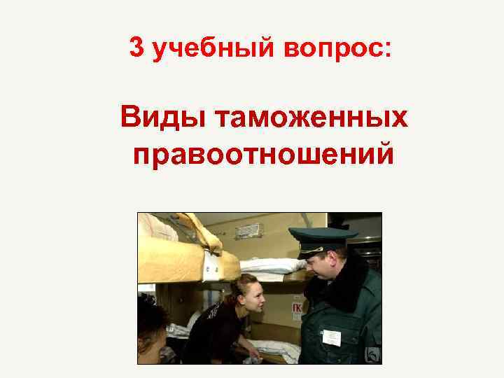 3 учебный вопрос: Виды таможенных правоотношений