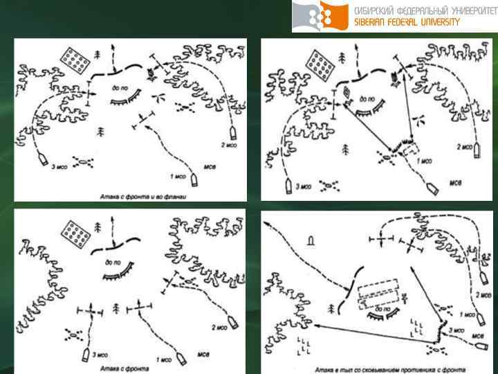 Виды атаки Атака в пешем порядке Атака на БМП (БТР) применяется на доступной применяется при прорыве для них местности при подготовленной обороны наступлении на противника, укрепленного поспешно перешедшего к района, овладении обороне, при отсутствии населенным пунктом, а также организованного на резкопересеченной и сопротивления, а также когда труднодоступной для танков и оборона противника надежно БМП (БТР) местности. подавлена и большая часть его противотанковых средств уничтожена разработчик подполковник Калинин О. Н.
