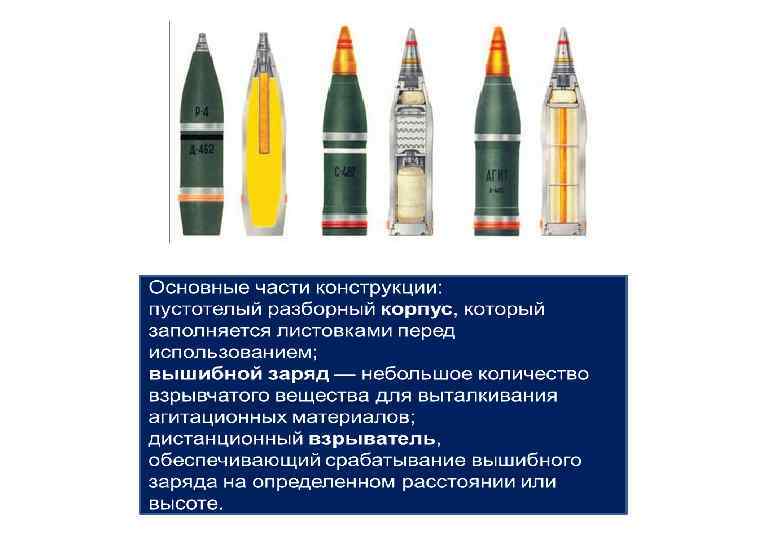 Технические средства МПО Агитацио нные боеприпа сы — боеприпасы специального назначения. Они предназначены для рассеивания агитационных мате риалов (обычно листовок) на территории, контролируемой противником. Поражающее действие специально не предусмотрено, однако крупные фрагменты таких боеприпасов могут представлять опасность для строений, техники и людей[. Агитационные боеприпасы существуют и в настоящее время для различных систем вооружения и родов войск: агитационные бомбы; агитационные снаряды ; агитационные боеприпасы для реактивной артиллерии; агитационные минометные мины.