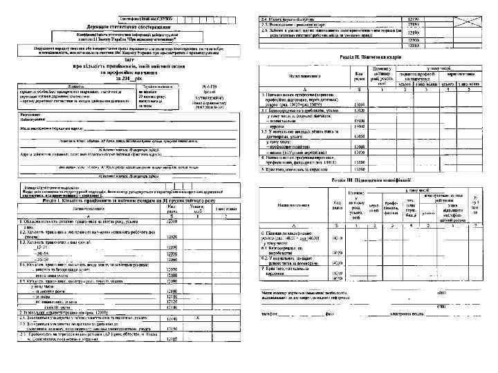 Статистика чисельності, заробітної плати та робочого часу найманих працівників Найменування форм Індекс форми Періодичні сть 3. Звіт про кількісний та якісний склад державних службовців та посадових осіб місцевого самоврядуван ня (05. 08. 2014 № 224) 9 -ДС річна Установи (організації), на працівників яких поширюється дія законів України "Про державну службу" та "Про службу в органах місцевого самоврядування" Органу державної статистики за місцезнаходженн ям не пізніше 8 -го січня 4. Звіт про кількість працівників, їхній якісний склад та професійне навчання (05. 08. 2014 № 224 ) 6 -ПВ річна Юридичні особи, їхні відокремлені підрозділи, визначені за переліком органів державної статистики Органу державної статистики за місцем здійснення діяльності не пізніше 20 лютого року, наступн ого за звітним №№ з. п. Хто подає Кому подається Строк подання
