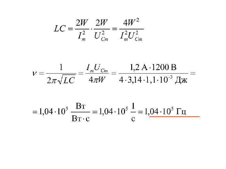 Задача 3. 1 Колебательный контур состоит из конденсатора и катушки индуктивности. Определить частоту колебаний, возникающих в контуре, если максимальная сила тока в катушке индуктивности 1, 2 А, максимальная разность потенциалов на обкладках конденсатора 1200 В, полная энергия контура 1, 1 м. Дж. Дано: Im = 1, 2 A UCm = 1200 В W = 1, 1 м. Дж = 1, 1 · 10 -3 Дж ν-?