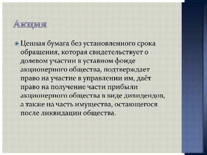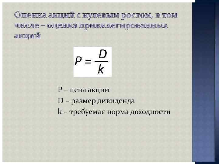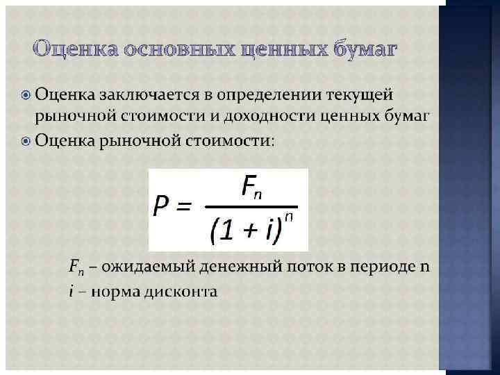 ПОКАЗАТЕЛИ СТОИМОСТИ Приведенная стоимость акции = Приведенная стоимость будущих дивидендов + приведенная стоимость будущего курса продаж акций Приведенная стоимость облигации = Приведенная стоимость будущих процентов + приведенная стоимость основной суммы долга