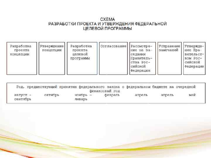 Федеральная целевая программа - увязанный по задачам, ресурсам и срокам осуществления комплекс научноисследовательских, опытно-конструкторских, производственных, социально-экономических, организационно-хозяйственных и других мероприятий, обеспечивающих эффективное решение системных проблем в области государственного, экономического, экологического, социального и культурного развития РФ, а также инновационное развитие экономики. Отбор ФЦП определяется: Ø значимостью проблемы; Ø невозможность проблему за счет рыночного механизма; Ø необходимость государственной поддержки для ее решения; Ø принципиальной новизной и высокая эффективность технических, организационных и иных мероприятий; Ø необходимостью координации межотраслевых связей.