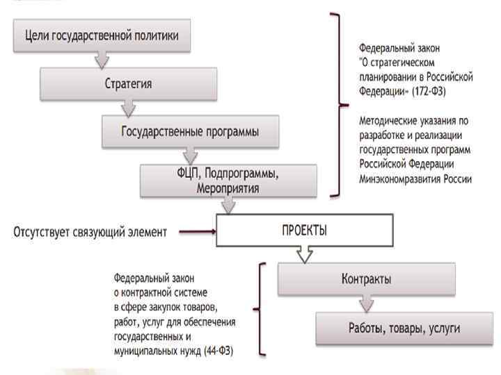 № 172 -ФЗ «О стратегическом планировании в Российской Федерации» от 28 июня 2014 г. Стратегическое планирование - деятельность участников стратегического планирования по целеполаганию, прогнозированию, планированию и программированию социально-экономического развития РФ, субъектов РФ и муниципальных образований, отраслей экономики и сфер государственного и муниципального управления, обеспечения национальной безопасности РФ, направленная на решение задач устойчивого социально-экономического развития РФ, субъектов РФ и муниципальных образований и обеспечение национальной безопасности РФ.