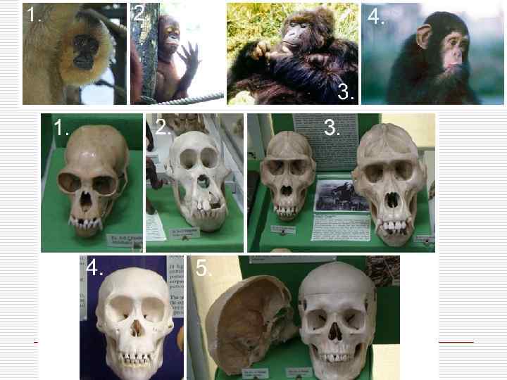 Резюме o o o Существуют разные подходы к познанию нашего прошлого. В самом общем виде их можно разделить на креационизм (религиозный подход), глобальный эволюионизм (философский подход) и теорию эволюции (научный подход). Мысль о сотворении человека высшим существом основывается только на мифах. У разных народов существует огромное количество подобных преданий, но чаще вспоминают ближневосточный вариант, ставший основой иудейской, христианской и мусульманской религий. В новейших вариантах христианского креационизма признается возможность морфологичекой эволюции предков человека, но отвергается эволюция его духовной сферы. Мысль о едином процессе эволюции человека вместе со всей Вселенной зародилась в античности. В более поздних и разработанных вариантах глобального эволюционизма момент возникновения и эволюции человека описывается, исходя с научных позиций. Оригинальность этим вариантам придают предсказания будущего человечества, приписывание человечеству глобальной роли в эволюции Вселенной. Мысль о происхождении человека от обезьян спонтанно возникла еще у народов с примитивной культурой, но научной стала лишь в Новое Время. В настоящее время в науке общепризнана фактически только синтетическая теория эволюции. Она основана на теории естественного отбора Ч. Дарвина и данных современной генетики. Согласно ей, человек произошел от приматов в ходе длительной биологической эволюции. Эволюционировали как биологические, так и социальные признаки. Биологические данные говорят о близком родстве человека и приматов. Это родство проявляется как в анатомическом строении, так и поведении. Наиболее близким к человеку приматом является шимпанзе.