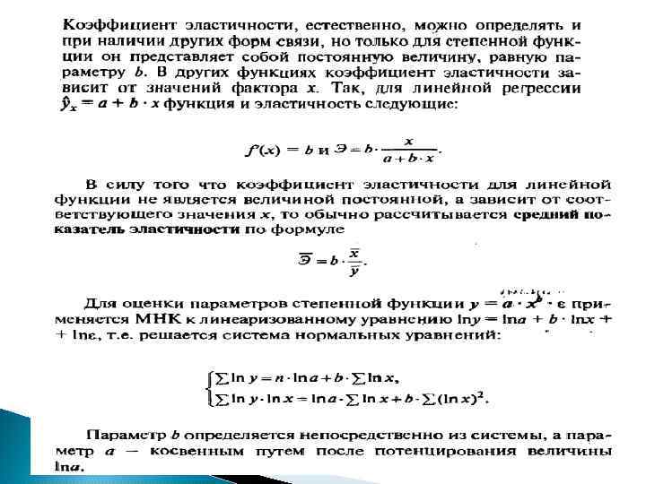 Нелинейные по оцениваемым параметрам Нелинейные модели внутренне линейные • Степенная • Показательная • Экспоненциальная • Обратная • Логистическая Нелинейные модели внутренне нелинейные