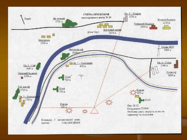 Вимоги до спостережних пунктів n n n Спостережні пункти повинні відповідати наступним вимогам: - забезпечувати виконання поставлених задач; - мати добрий огляд місцевості, що знаходиться перед фронтом і в глибині оборони противника в смузі (секторі) розвідки; - мати приховані підступи; - бути невидимим для спостереження противника; - забезпечувати розміщення особового складу, засобів зв'язку та техніки.