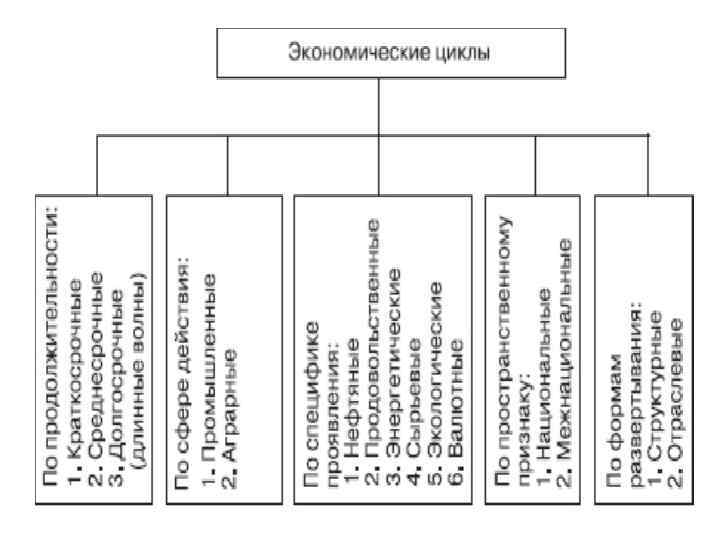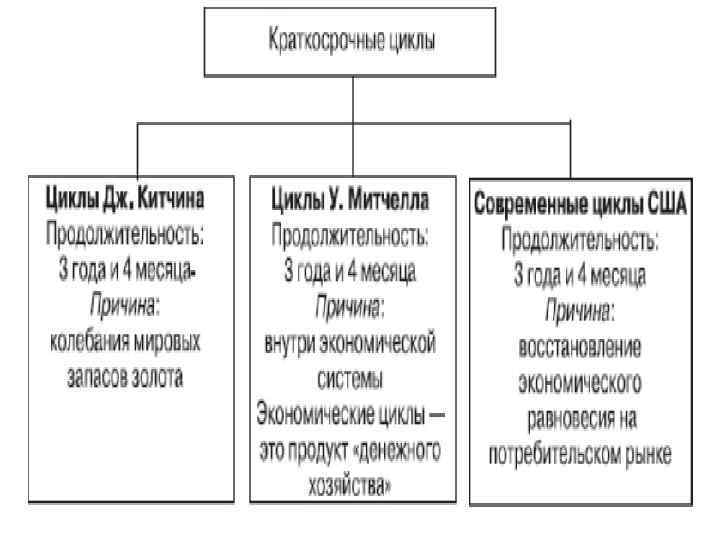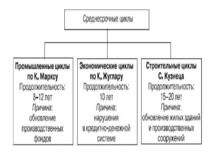 Экономический цикл это периодические колебания уровней занятости, производства и инфляции; период цикличности деловой активности. Первый крупный кризис имел место в Англии в 1825