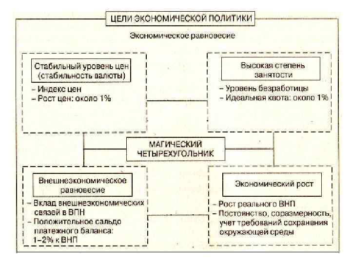Цели макроэкономики: - достижение эффективности экономики, то есть приближение фактического уровня производства к потенциальному; - экономический рост; - поддержание занятости; - стабилизация цен; - социальная справедливость; - экономическая свобода предпринимателей; - поддержание платёжного баланса