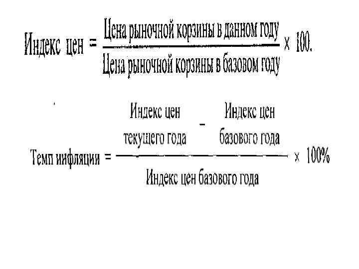Инфляция – это переполнение сферы обращения денежными знаками сверх реальных потребностей товарооборота, вызывающее обесценение денег и рост общего уровня цен. Инфляция измеряется с помощью статистических показателей - индексов цен. Наиболее распространённые индексы цен: - индекс потребительских цен (ИПЦ); - индекс цен товаров производственного назначения; - дефлятор ВВП.