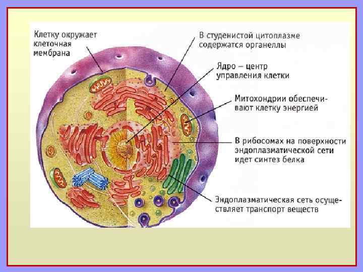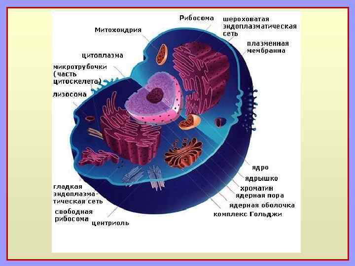 Диаграма типичной клетки животного. Отмеченные органоиды (органеллы) 1. Ядрышко 2. Ядро 3. Рибосома 4. Везикула 5. Шероховатый (гранулярный) эндоплазматический ретикулум 6. Аппарат Гольджи 7. Клеточная стенка 8. Гладкий (агранулярный) эндоплазматический ретикулум 9. Митохондрия 10. Вакуоль 11. Гиалоплазма 12. Лизосома 13. Центросома (Центриоль)